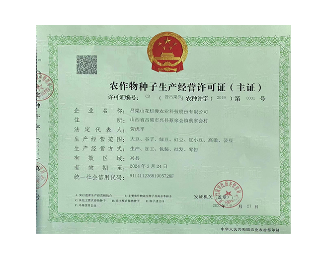 呂梁山花爛漫農(nóng)業(yè)科技股份有限公司是山西省農(nóng)業(yè)產(chǎn)業(yè)化重點(diǎn)龍頭企業(yè),公司成立于2008年,法人代表賀虎平,注冊資本1000 萬元,現(xiàn)有員工 30 人。公司位于興縣蔡家會(huì)鎮(zhèn)蔡家會(huì)村建有占地面積1萬多平方米生產(chǎn)區(qū)和辦公區(qū),年總加工雜糧能力達(dá)到4萬噸。擁有一套日精加工50噸谷子成套設(shè)備生產(chǎn)流水線;擁有一套日精加工30噸豆面、蕎面設(shè)備流水生產(chǎn)線;擁有一套日精加工50噸紅小豆、豇豆、綠豆、腎型黃豆、紅蕓豆設(shè)備流水生產(chǎn)線,2020年引進(jìn)省農(nóng)科院農(nóng)產(chǎn)品加工研究所谷子精深加工技術(shù),目前設(shè)計(jì)年產(chǎn)300噸的小米油加工一條龍生產(chǎn)線已經(jīng)安裝調(diào)試完畢,產(chǎn)品經(jīng)化驗(yàn)達(dá)到國家一級油標(biāo)準(zhǔn),并獲得兩項(xiàng)專利證書。主要產(chǎn)品有“山花爛漫”牌有機(jī)小米、綠色小米各種精美包裝系列;蔡家會(huì)村豇豆面、豌豆面等雜糧面、手搟豆面系列、以及有機(jī)精品雜糧系列。擁有“山花爛漫”山西省著名商標(biāo)。公司采用線下和線上銷售相結(jié)合的營銷模式。